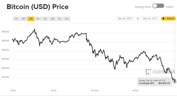 Bitcoin-in qiyməti 18 Dekabrda 20 min dolların üzərinə çıxmışdı.