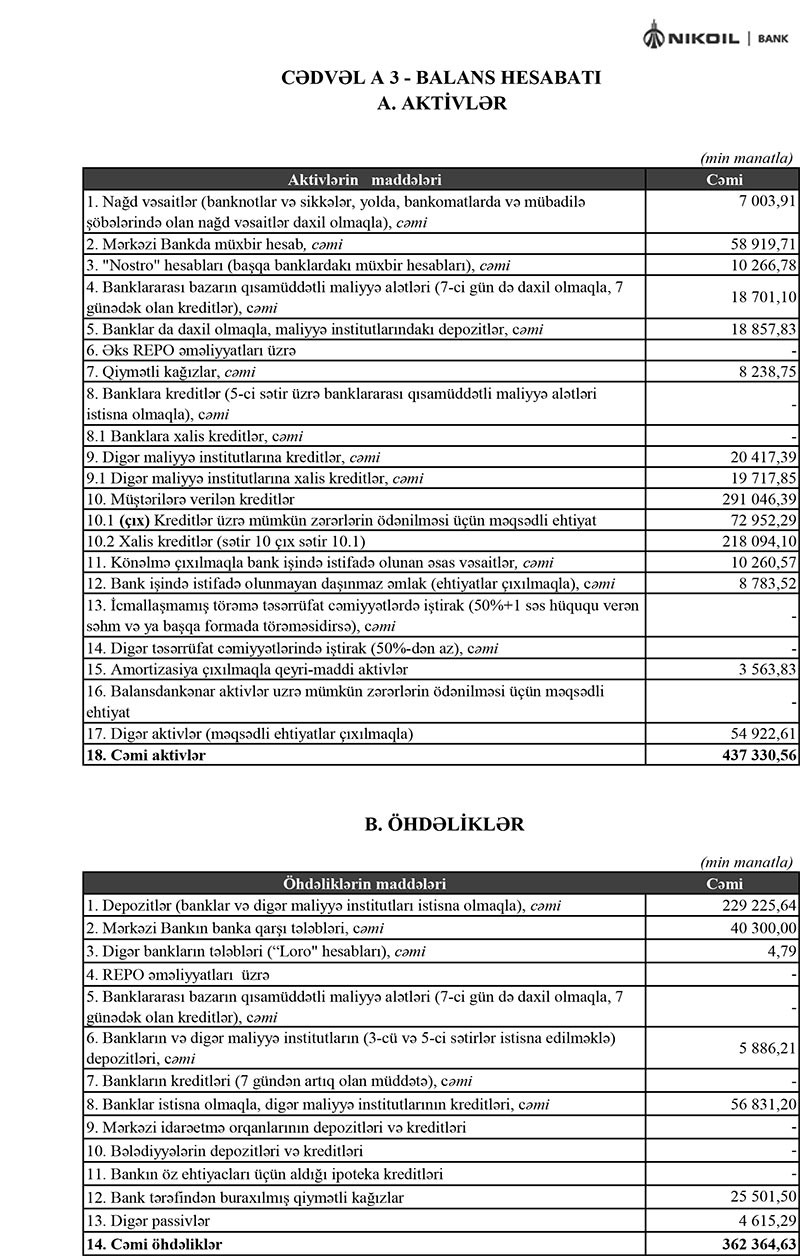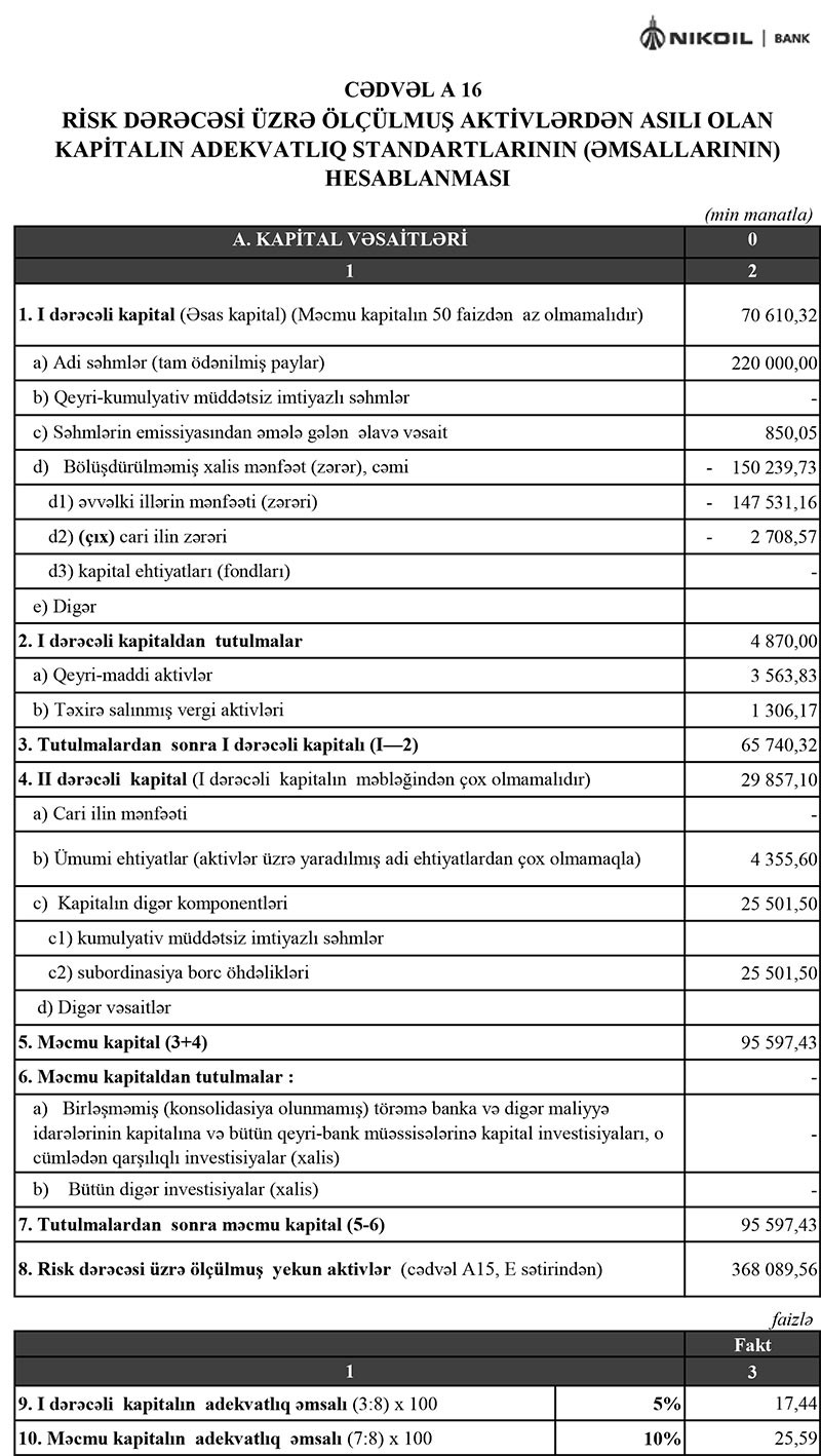 Tutulmalardan sonra “Nikoil Bank” məcmu kapitalı 95 milyon 597 min manat təşkil edir ki, bu da minimum tələbdən təxminən 2 dəfə çoxdur.