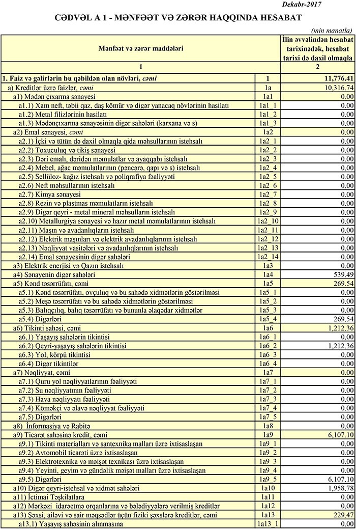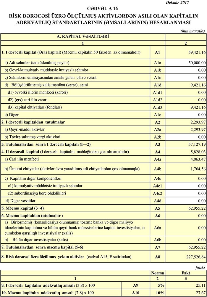 Bankın kredit portfeli 2016-cı ilin sonundakı 54 milyon 666 min manatdan 67 milyon 884 min manata qalxıb.