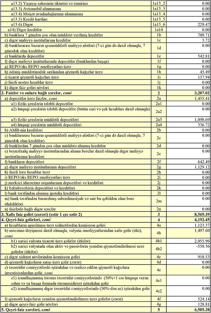 “Marja” Bankın maliyyə hesabatlarına istinadən xəbər verir ki, ötən il Bankın cəmi gəlirləri 15 milyon 968 min manat, o cümlədən faiz gəlirləri 11 milyon 776 min manat, qeyri-faiz gəlirləri 4 milyon 192 min manat təşkil edib.