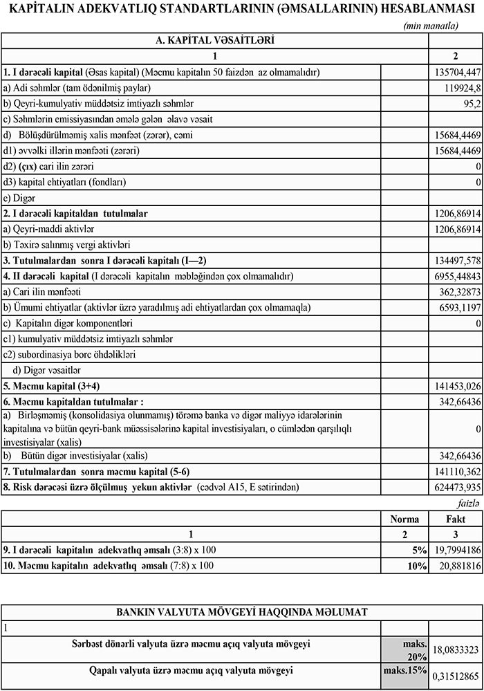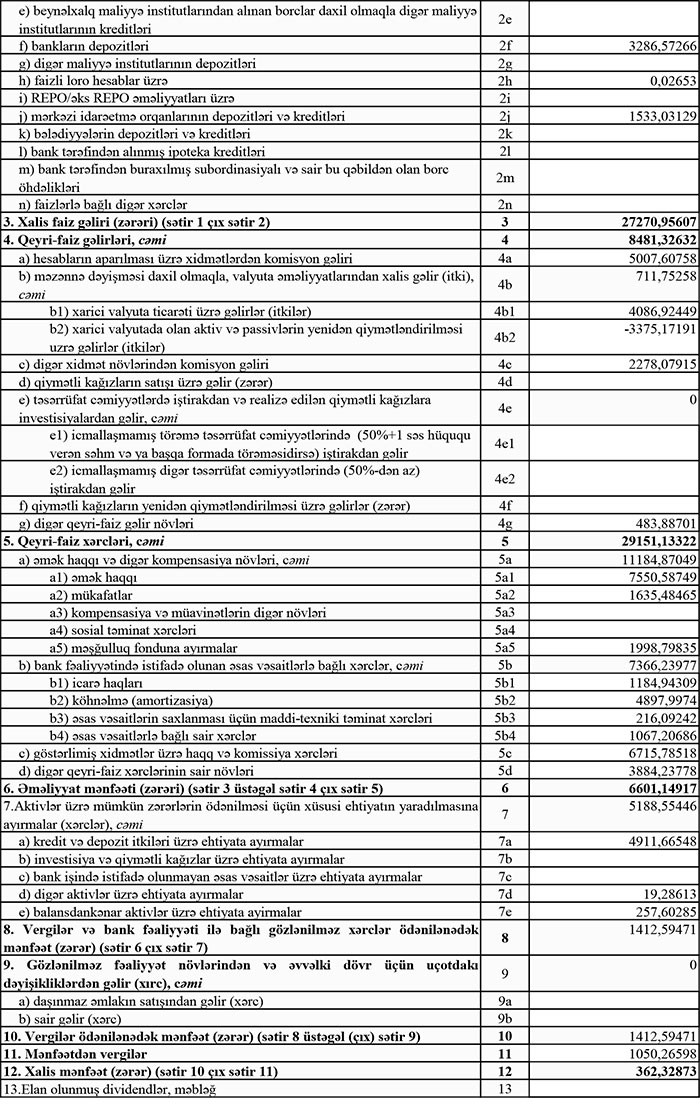 Müştərilərə verilən kreditlər 2016-cı ilin sonundakı 406 milyon 533 min manatdan 464 milyon 34 min manata qalxıb. Xalis kreditlər isə (Kreditlər üzrə mümkün zərərlərin ödənilməsi üçün məqsədli ehtiyat çıxıldıqdan sonra) 381 milyon 380 min manatdan 415 milyon 422 min manata yüksəlib.