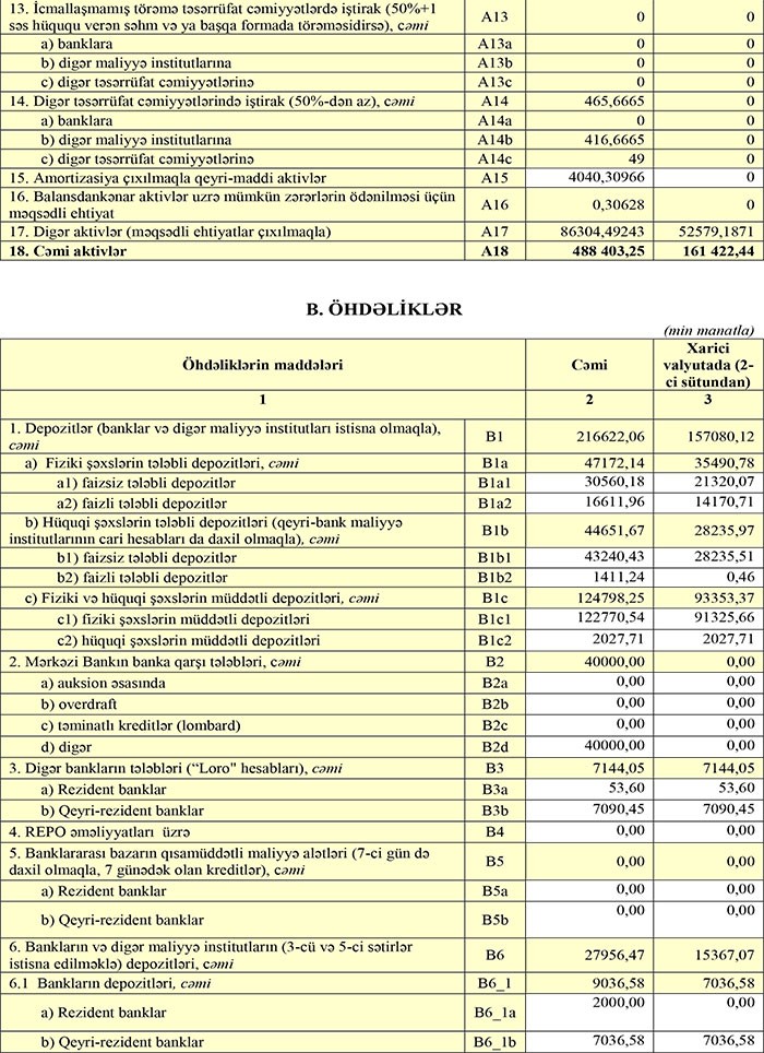 31 Dekabr 2017-ci il tarixində “AgBank” 488 milyon 403 min manat cəmi aktivlərə, 441 milyon 233 min manat cəmi öhdəliklərə və 47 milyon 174 min manat cəmi balans kapitalına malik olub.