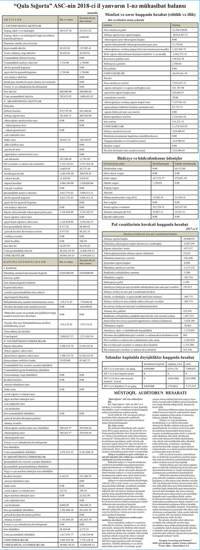 “Qala Sığorta” ASC 2017-ci ili 618,9 min manat zərər ilə başa vurub.