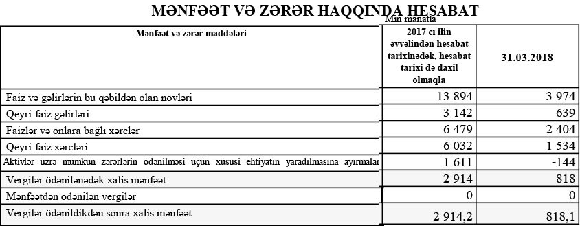 “NBC Bank” ASC 2018-ci ilin 1-ci rübünü 818,1 min manat xalis mənfəət ilə başa vurub.