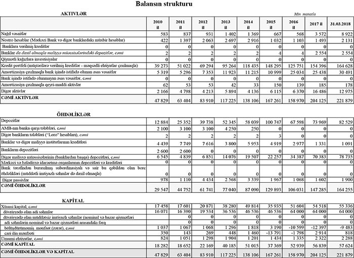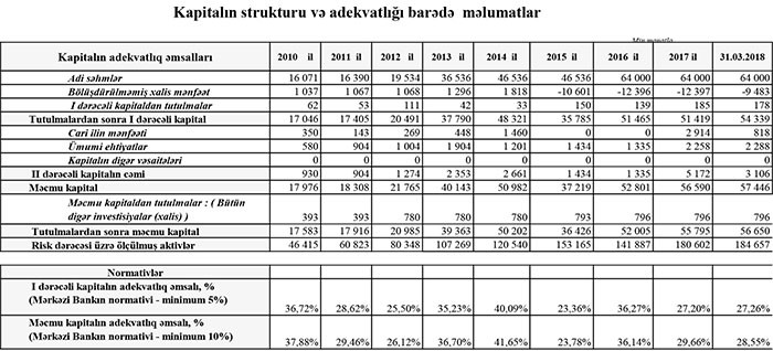 Bankın məcmu kapitalı isə 56 milyon 590 min manatdan 57 milyon 446 manata qalxıb.