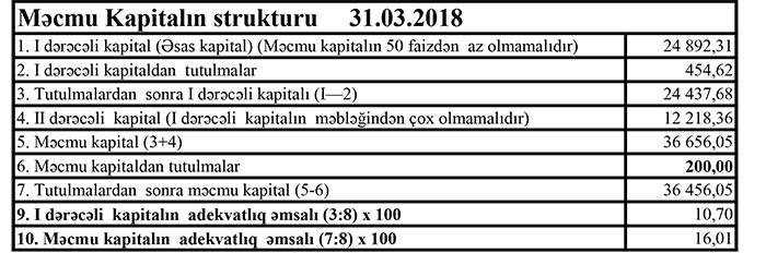 31.03.2018-ci il tarixində “AmrahBank” 37 milyon 110 min manat cəmi kapitala, 36 milyon 456 min manat məcmu kapitala malik olub. Yaranan zərərlər Bankın kapitalını silir.