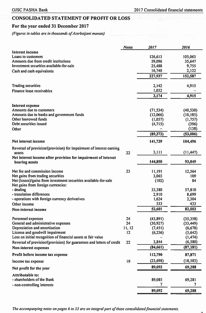 Azərbaycanın iri korporativ bankı olan "PAŞA Bank" ASC 31 dekabr 2017-ci il tarixinə konsolidə edilmiş müstəqil auditorların hesabatını dərc edib.