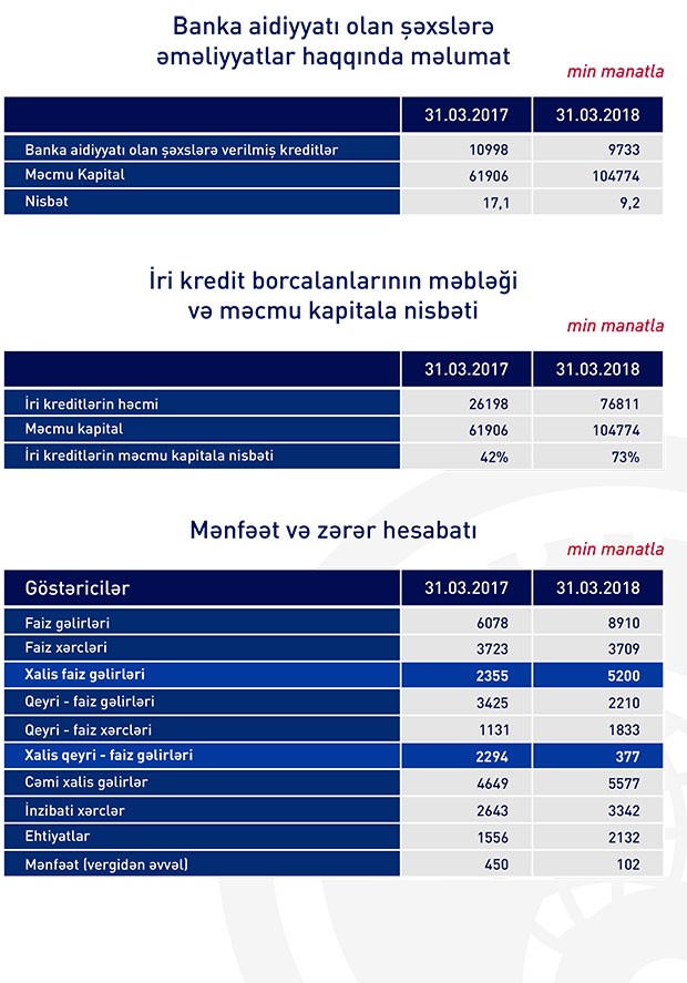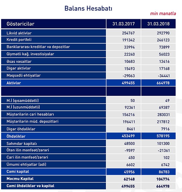“RabitəBank” ASC 2018-ci ilin 1-ci rübünün yekununa dair maliyyə göstəricilərini açıqlayıb.