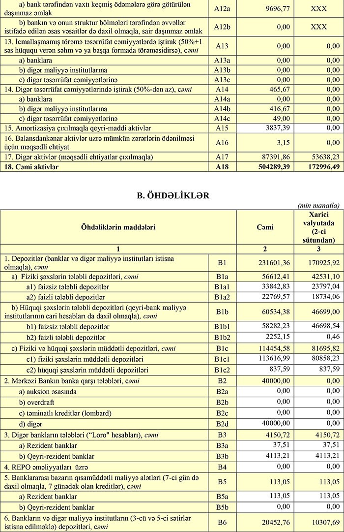 ƏHALİNİN ƏMANƏTLƏRİ AZALIB
