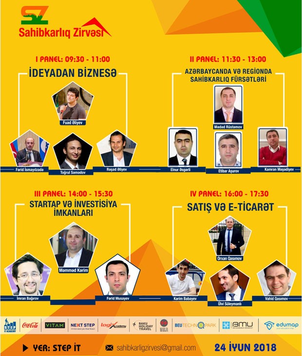 Zirvə 4 paneldən (hər panel 1,5 saat olmaqla) ibarət idi. “İdeyadan biznesə, "Azərbaycanda və regionda sahibkarlıq fürsətləri", "Startap və investisiya imkanları" və “Satış və e-ticarət” mövzusunda panellərdən ibarət olan Sahibkarlıq Zirvəsində Azərbaycanda və regionda öz biznesini quraraq uğur qaznmış 15-dən çox sahibkar-mütəxəssis iştirak etdi.