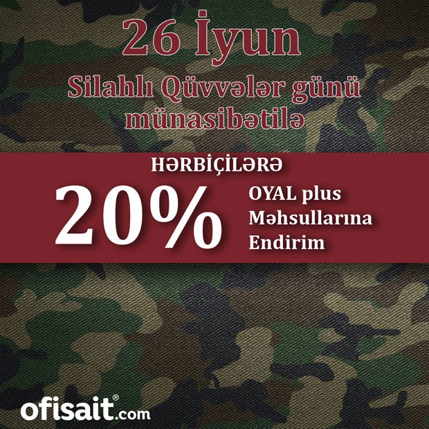 Belə kompaniyalarından biri də 26 iyun - Silahlı Qüvvələr günü münasibətilə Silahlı Qüvvələrin bütün əməkdaşları üçün nəzərdə tutulub. Mağazada bütün Oyal məhsullarına 20 faiz endirim elan olunur.