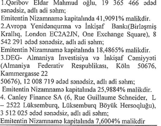 2017-ci ilin sonuna səhmdar tərkibi
