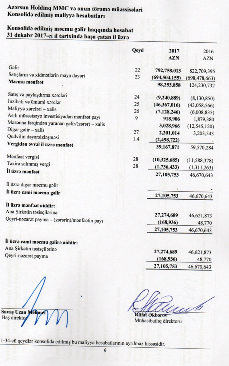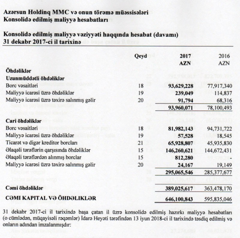 “Azərsun Holdinq” MMC və onun törəmə müəssisələrinin 2017-ci il üzrə konsolidə edilmiş maliyyə hesabatı dərc edilib.