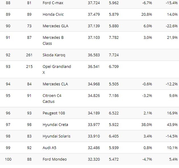 "Marja" Azərbaycan Avtomobil İstehsalçıları Assosiasiyasının (ACEA) məlumatına istinadən xəbər verir ki, ilk beşliyə Volkswagen-nin 3 modeli daxildir.