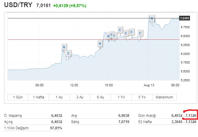 Cümə günü ABŞ Prezidenti Trampın Türkiyədən idxal edilən alüminium və polada vergi nisbətlərini 2 dəfə artıracaqlarını açıqladı. Bununla bərabər, ABŞ-ın Türkiyə ilə münasibətlərinin yaxşı olmadığını qeyd etdi. Trampın açıqlaması ilə məzənnə rekord səviyyələrə yüksəldi.