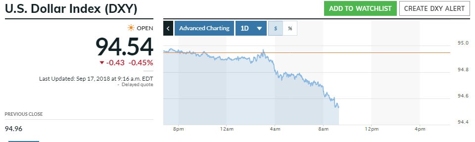 ABŞ valyutasının 6 mühüm valyuta qarşısındakı dəyərini göstərən Dollar indeksi isə 0.45% düşərək 94.54-ə geriləyib. Son bir ayda indeks 1.43% düşüb.