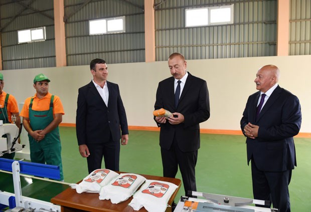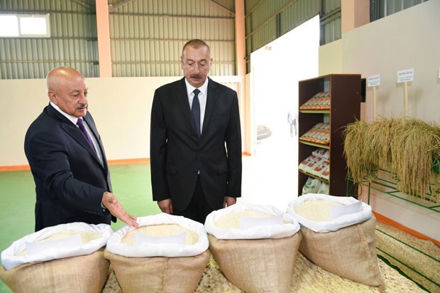 İlham Əliyev çəltik emalı müəssisəsini işə saldı
