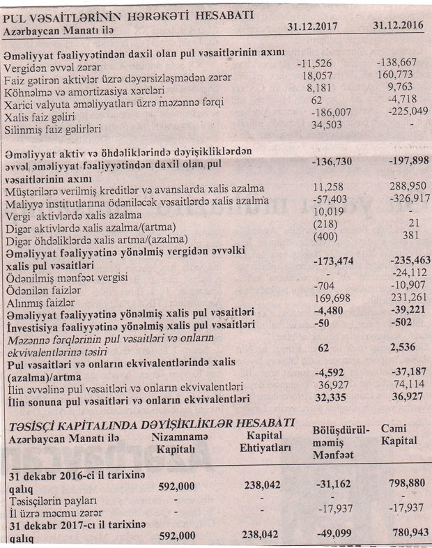 MMC-nin xərcləri gəlirlərini üstələdiyindən 17 min 937 manat zərər yaranıb. 2016-cı illə müqayisədə zərərin azalmasının səbibi kreditlərin dəyərsizləşməsi üzrə ehtiyata ayırmanın və xərclərin aşağı düşməsidir.