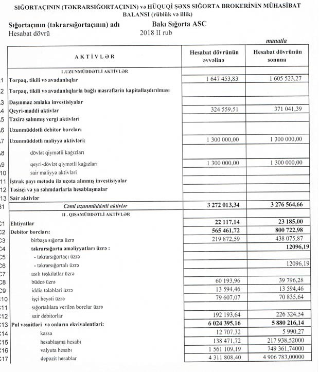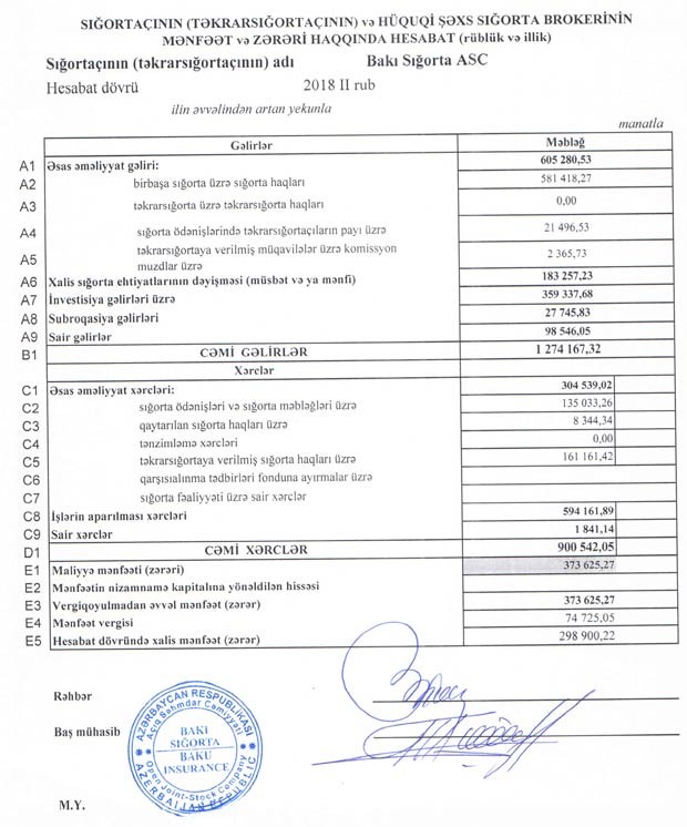 Qeyd edək ki, 2017-ci ildə “Bakı Sığorta”nın cəmi gəlirləri 2 milyon 501 min manat, cəmi xərcləri isə 2 milyon 173 çmin manat təşkil etmişdi.