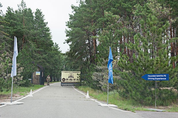 Suxoluçyadan sonra yolumuz 116 km. məsafədə yerləşən Borispol rayonundakı atçılıq mərkəzinə oldu. Həmin ərazidə yerləşən meşəlikdə bizi yolsuzluqların testi gözləyirdi. Yeni tam ötürücü transmissiyanın özünü yolsuzluqda necə aparacağı bütün jurnalistlərə maraqlı idi. Görəsən faşist tankları keçə bilməyən Ukrayna meşələrindən Santa Fe necə keçəcək? Düşünməsi belə dəhşətlidir. Təşkilatçılar onsuzda yol olmayan ərazilərdə süni palçıq və gölməçələr yaratmışdılar. Buna baxmayaraq keçilməz yolsuzluqlar qarşımıza çıxmadı. Əslində testdə olanlardan heç kim yeni SUV-dan offrouder keyfiyyətlərini tələb etmirdi. Qısası yolsuzluq testlərimiz imkan verdi ki, yeni transmissiyanın işindən, differensialların bloklanmasından razı qalaq. Təlimatçılarımız yolsuzluqda maksimal 30 km/saat sürətlə hərəkət etmək haqda göstəriş vermişdi. Bu sürətlər üçün yolsuzluq testlərində şassi tənzimi özünü layiqli göstərdi.