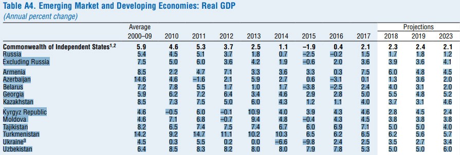 Hesabata görə, 2018-ci ildə Ermənistan iqtisadiyyatının 6%, Gürcüstan iqtisadiyyatının 5,5%, Azərbaycan iqtisadiyyatının isə 1,3% artacağı gözlənilir.
