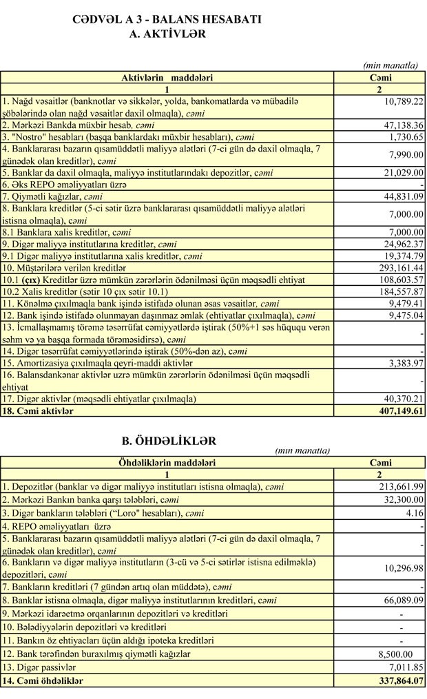 Bankın müştərilərə verdiyi kreditlər ötən ilin Sentyabr ayının sonundakı 292 milyon 124 min manatdan 293 milyon 161 min manata yüksəlib (30 Sentyabr 2018-ə olan məlumat).