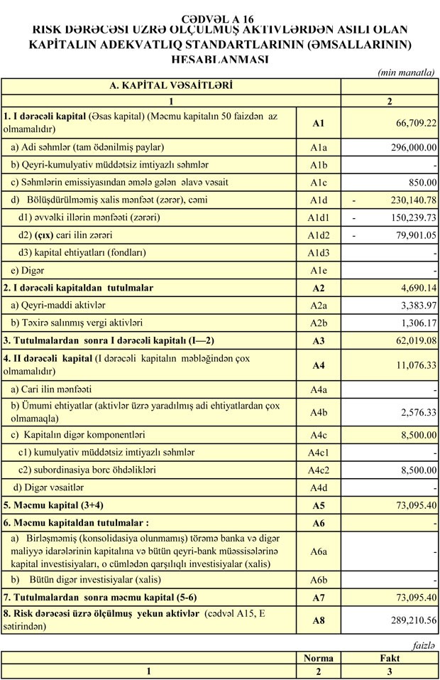 Bankın böyük məbləğdə zərər etməsi gecikmədə olan kreditlərə görə ehtiyatın yaratması ilə bağlıdır. Müştərilərə verilmiş kreditlərin müəyyən hissəsinin bata biləcəyi ehtimal edilir. Ehtimal reallaşmasa ehtiyatlara ayrılan vəsait gəlirə əlavə ediləcəkdir.