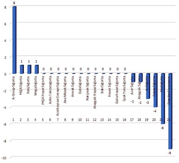 Reytinq cədvəlinin ilk dördlüyü belədir: “A-Group Sığorta”, “Paşa Sığorta”, “Xalq Sığorta”, “Meqa Sığorta”.
