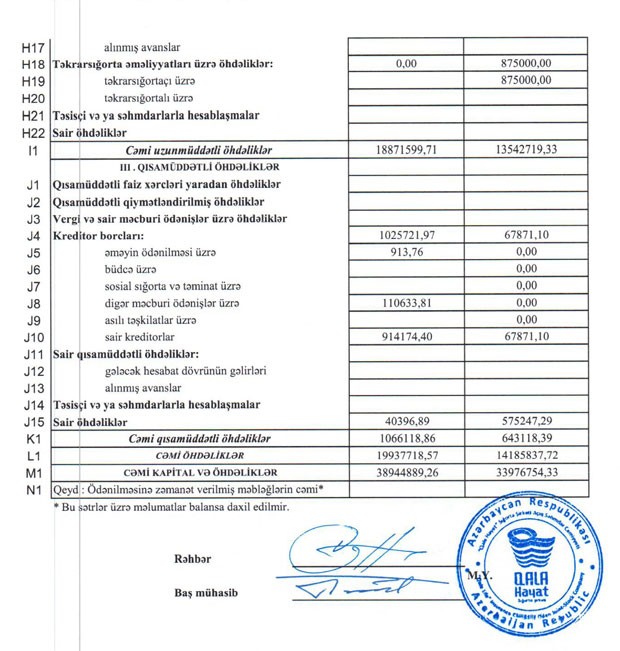 Müqayisə üçün qeyd edək ki, 2017-ci ilin birinci yarısında “Qala Həyat”ın cəmi gəlirləri 18 milyon 736 min manat, cəmi xərcləri 17 milyon 627 min manat, xalis mənfəəti isə 1 milyon 109 min manat təşkil etmişdi.