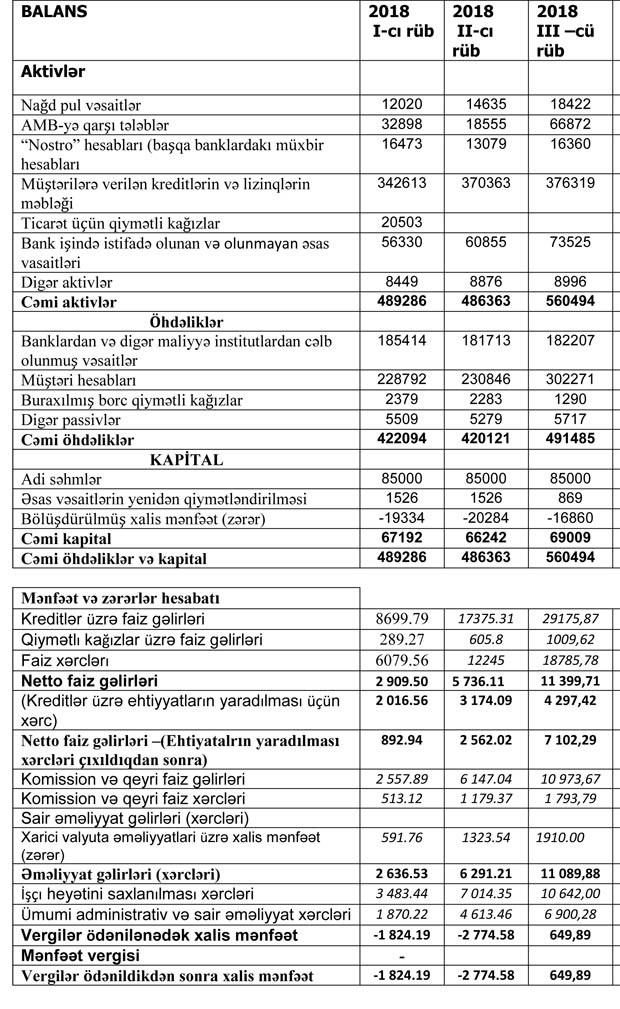 “Muğan Bank” ASC 2018-ci ilin 9 ayını 650 min manat xalis mənfəət ilə başa vurub. Halbuki Bank, cari ilin 6 ayını 2 milyon 774 min manat xalis zərər ilə bağlamışdı.
