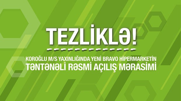 “Tezliklə “Koroğlu” metro stansiyası yaxınlığında “Bravo” Hipermarketin rəsmi təntənəli açılış tədbiri olacaqdır”.