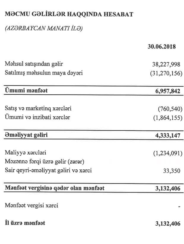 “Marja” şirkətin yarımillik hesabatına istinadən xəbər verir ki, 2018-ci ilin yanvar-iyun dövründə "METAK"ın cəmi gəlirləri 38 milyon 261 min manat, cəmi xərclər 35 milyon 129 min manat təşkil edib. Nəticədə, “METAK” 3 milyon 132 min manat mənfəət əldə edib. Şirkət cari ilin birinci yarısında mənfəət vergisi ödəməyib.