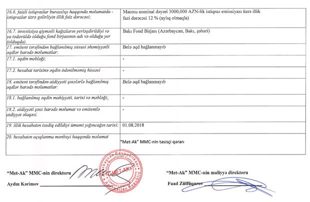 30 İyun 2018-ci il tarixində “METAK” 72 milyon 65 min manat cəmi aktivlərə, 22 milyon 886 min manat cəmi öhdəliklərə və 30 milyon 708 min manat cəmi kapitala malik olub. Müqayisə üçün qeyd edək ki, şirkət ötən ilin sonunda 66 milyon 947 min manat cəmi aktivlərə, 39 milyon 862 min manata cəmi öhdəliklərə və 27 milyon 85 min manat cəmi kapitala malik idi.