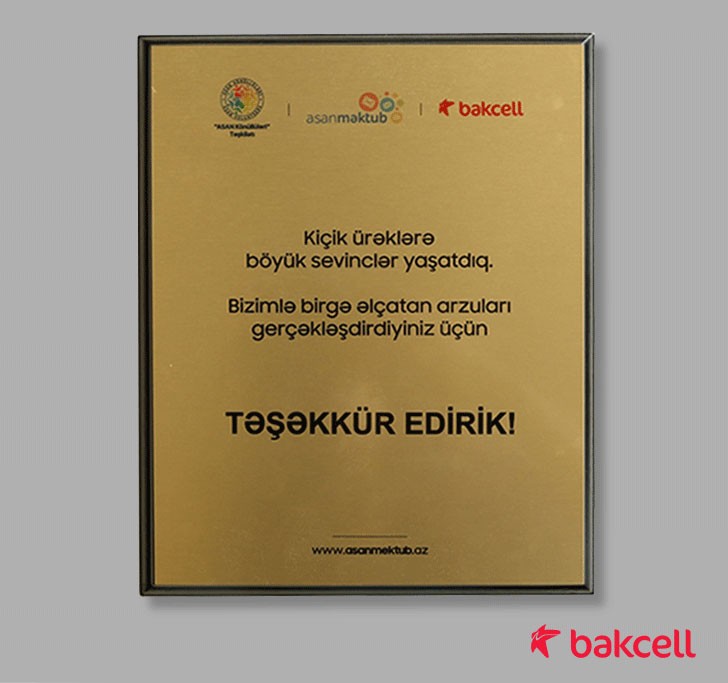 (®) Azərbaycanın İlk Mobil Operatoru və Ən Sürətli Mobil İnternet Provayderi Bakcell şirkəti “ASAN Məktub” təşəbbüsündə fəal iştirakına görə təşəkkürnamə ilə təltif olunub.