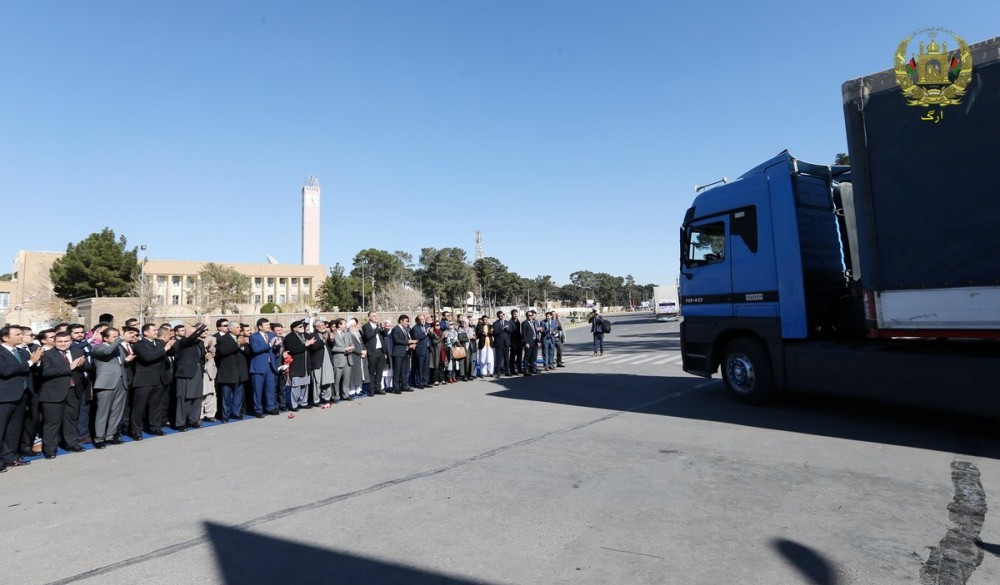 Təntənələrin kulminasiya nöqtəsi Prezident Məhəmməd Əşrəf Qani və onu müşayiət edən digər yüksəkvəzifəli şəxslərin qırmızı lenti kəsməsi və bundan sonra doqquz ağırtonnajlı avtomobildən ibarət pilot avtomobil karvanının Lazurit dəhlizi marşrutu ilə yola salınması olub. Yüklər Heratdan Turqundi stansiyasına, oradan Türkmənistanın Sərhədabad şəhərinə, sonra bütün ölkənin ərazisindən keçərək Türkmənbaşı Beynəlxalq Dəniz Limanına çatacaq. Daha sonra avtomobil karvanı Xəzər dənizi ilə Azərbaycana – Bakı Beynəlxalq Dəniz Limanına yola salınacaq.