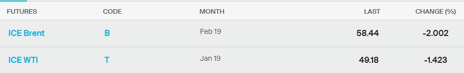 "Marja" xəbər verir ki, bu gün Brent nefti 2% də ucuzlaşaraq 58,44 dolları, ABŞ xam nefti isə 1,4% düşərək 49.18 dolları görüb (saat 11:43-ə olan məlumat). Neft qiymətləri əvvəlki seanslarda 3%-dən çox düşüb.