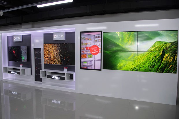 Bu şou-rumda Vestel-in texnoloji yeniliklərinin geniş çeşidi ayrı-ayrı bölmələr şəklində nümayiş olunur. Televiziya və rəqəmsal işarət ekranları bölməsində istifadəçilərin real həyatda gördüyü rəng və parlaqlığı təmin edən Vestel OLED TV, sərhədsiz televiziya ideyasının daşıyıcısı ultra-dar çərçivəli UHD TV və professional panellərə sahib Vestel Rəqəmsal İşarət Ekranları ilə tanış olmaq mümkündür.