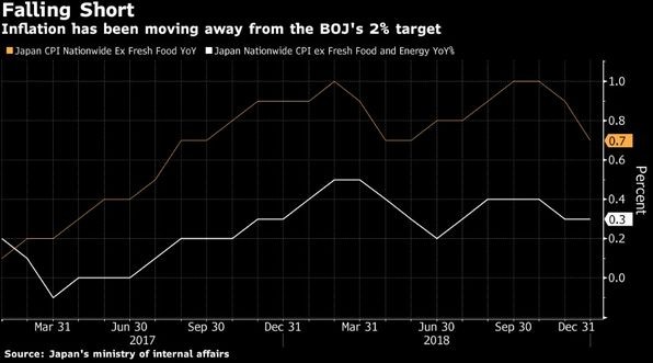 BOJ, inflyasiya proqnozunu bir daha salaraq, 2019-cu maliyyə ili üçün aşağı neft qiymətlərini əsas səbəb göstərərək 1,4 faiz səviyyəsindən 0,9%-ə endirib.