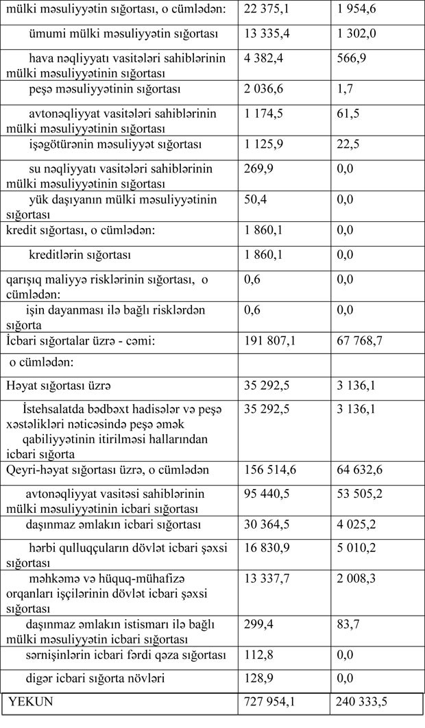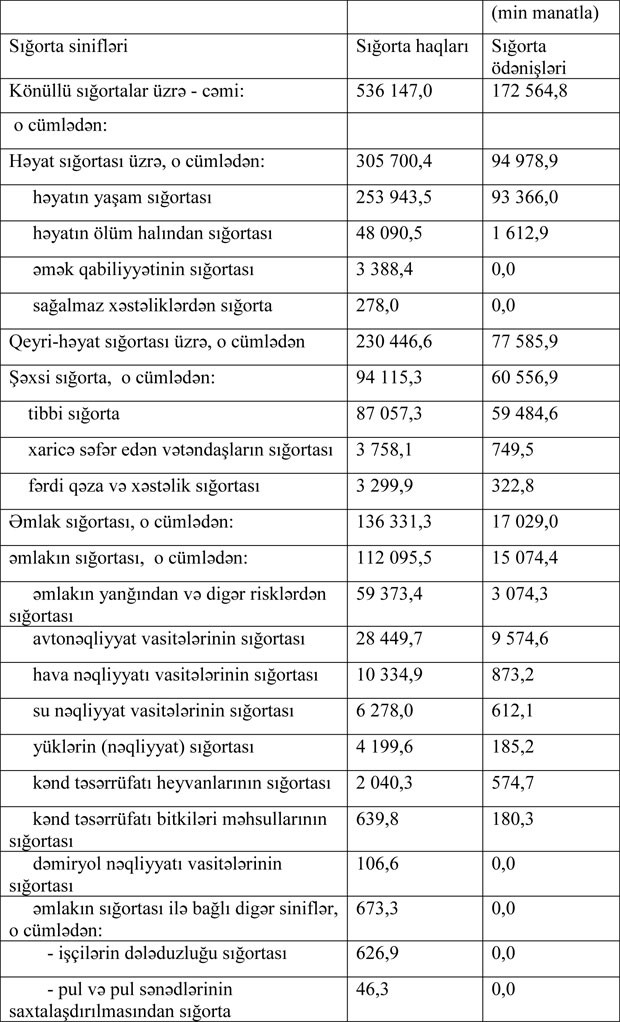 Sığorta haqları və sığorta ödənişləri - SİNİFLƏR ÜZRƏ