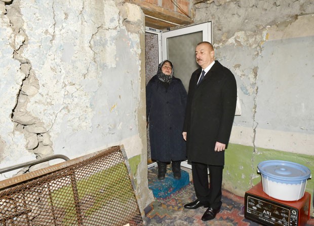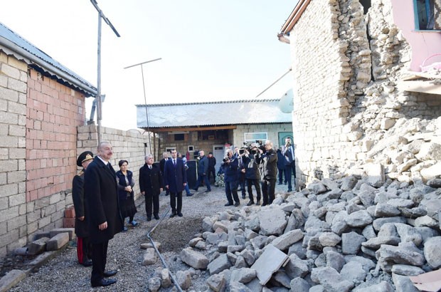 Dövlətimizin başçısı zəlzələdən zərər çəkən tikililərə baxıb, sakinlərlə söhbət edib.