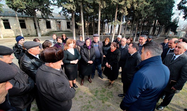 Sonra bağçanın həyətində sakinlərlə görüşüblər.