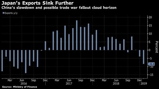 Yaponiyanın ixracı 2016-cı ildən bəri ilk dəfə ardıcıl ikinci dəfədir azalıb.