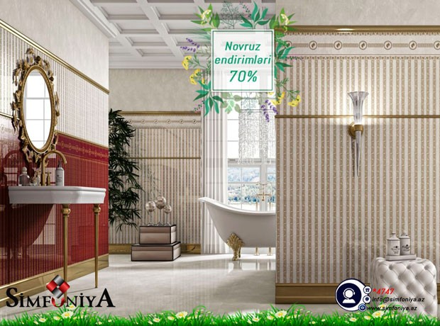 (©) “Simfoniya” Dizayın Ticarət və Təmir mərkəzi BAHARIN gəlişi ilə əlaqədar ilk dəfə olaraq mart ayının 10-dan aprel ayının 10-a qədər bütün məhsullara 30-50%, seçilmiş məhsullara isə 70% endirimlər təklif edir.