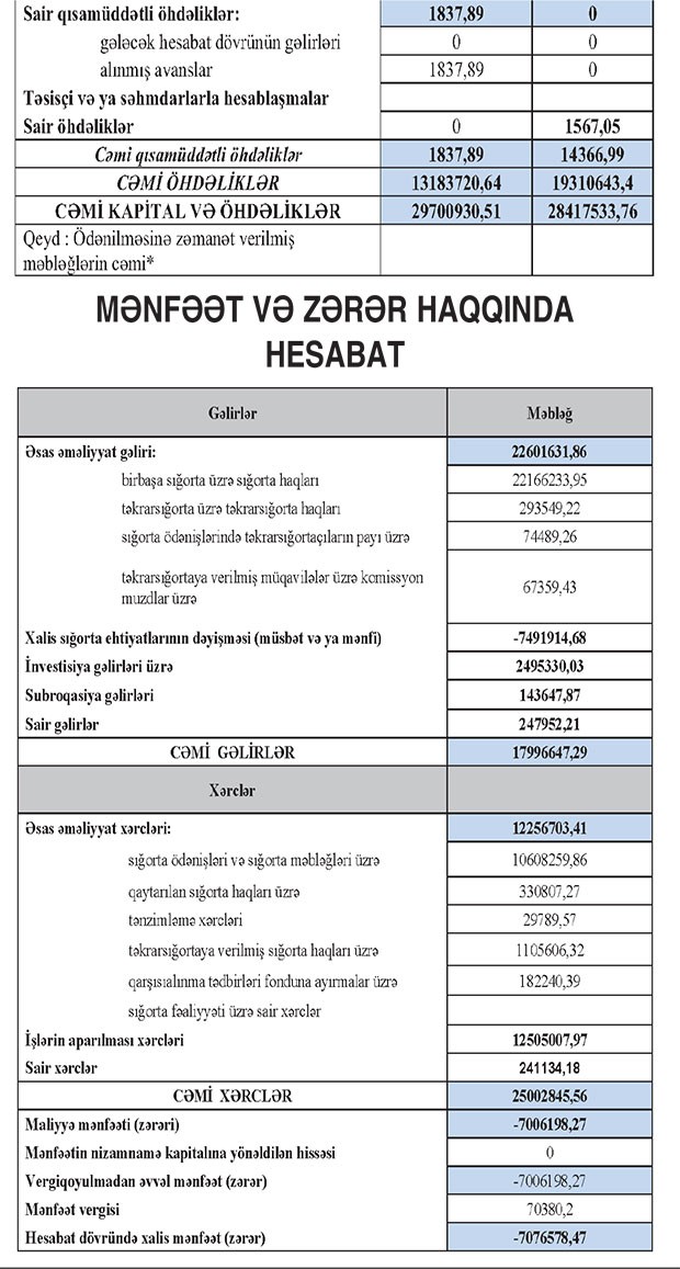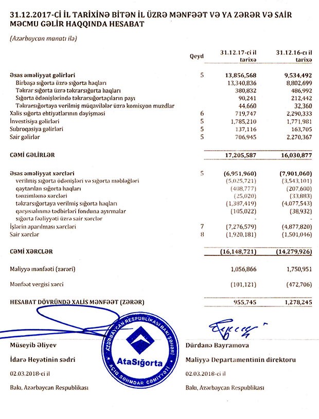 “AtaSığorta” ASC 2018-ci ili 7 milyon 77 min manat xalis zərər ilə başa vurub. Halbuki, şirkət 2017-ci ili 956 min manat xalis mənfəət ilə bağlamışdı.