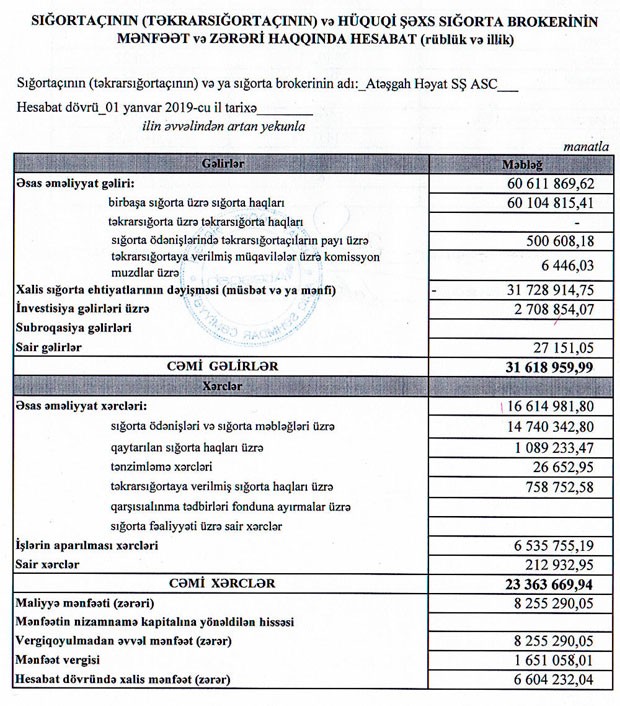 “Marja” Şirkətin maliyyə hesabatlarına istinadən xəbər verir ki, ötən il “Atəşgah Həyat Sığorta Şirkəti”nin cəmi gəlirləri 31 milyon 619 min manat, cəmi xərcləri isə 23 milyon 364 min manat təşkil edib. Şirkət 8 milyon 255 min manat maliyyə mənfəətindən 1 milyon 651 min manat mənfəət vergisi ödəyib.