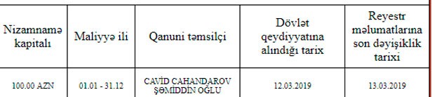 Vəkil Cavid Cahandarov şirkətin qanuni təmsilçisidir.