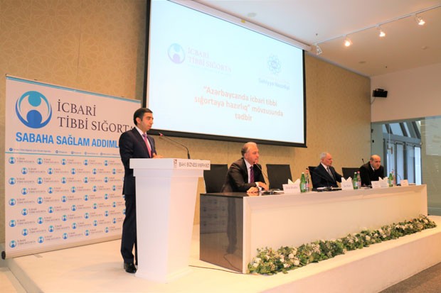 Tədbirdə açılış nitqi ilə çıxış edən səhiyyə naziri Oqtay Şirəliyev bildirib ki, ölkədə icbari tibbi sığortanın tətbiqi səhiyyənin maliyyələşdirilməsinin yeni mənbələrinin yaradılmasına, əhaliyə keyfiyyətli tibbi xidmətlərin göstərilməsinə, tibb müəssisələrinin maddi-texniki bazasının gücləndirilməsinə, müalicə və diaqnostik imkanlarının genişləndirilməsinə gətirib çıxaracaqdır. Göstərilmiş tibbi xidmətlər müqabilində tibb işçilərinin mövcud əməkhaqlarına müəyyən olunmuş əlavələr onların əməyinin stimullaşdırılmasına və sosial rifah halının yüksəldilməsinə yol açacaqdır.