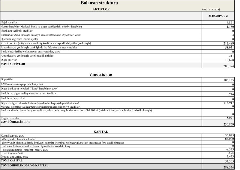 “NBC Bank” 2019-cu ilin 1-ci rübü üzrə maliyyə göstəricilərini açıqlayıb.