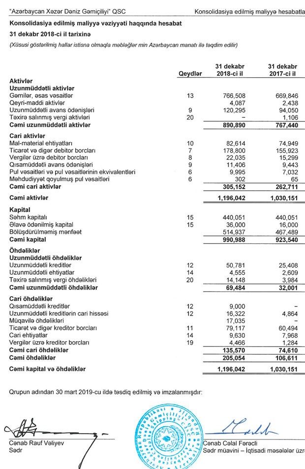 “Azərbaycan Xəzər Dəniz Gəmiçiliyi” QSC-nin (ASCO) aktivləri 31 Dekabr 2018-ci il tarixinə 1 milyard 196 milyon manat təşkil edib.Bu, 2017-ci illə müqayisədə 16,1% çoxdur.