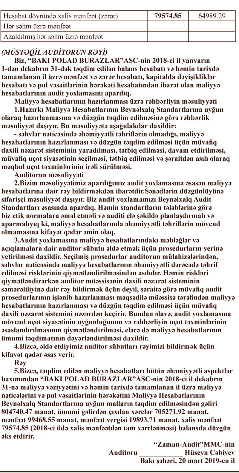"Bakı Polad Burazlar" ASC 2018-ci ili 79 min 574 manat xalis mənfəətlə başa vurub. Bu, 2017-ci illə müqayisədə 22,4% çoxdur. ASC 2017-ci ili 64 min 989 manat xalis mənfəətlə bağlamışdı.